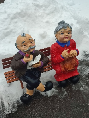 Oma und Opa lebensgroß auf der Bank ( P 120 )